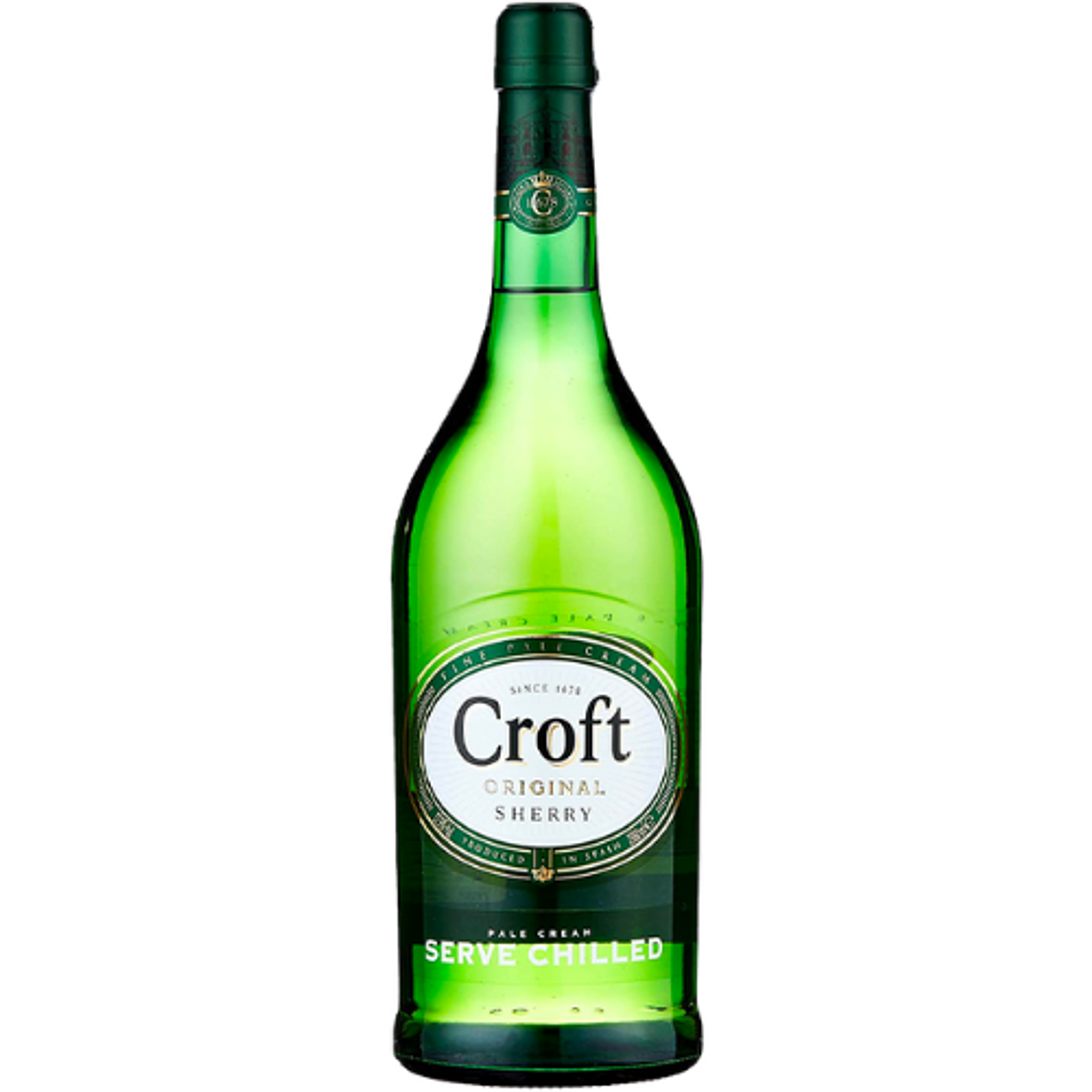 Croft Original Pale Cream Sherry is an elegant fortified wine from Spain, crafted with a minimum of four years of aging in the traditional criaderas and soleras system. With an ABV of 17.5%, it blends the crisp freshness of fino with a gentle sweetness, making it one of the most popular pale creams worldwide. Its refined balance of nutty, floral, and fruity notes makes it versatile and approachable, enjoyed both as an aperitif and alongside a variety of dishes.