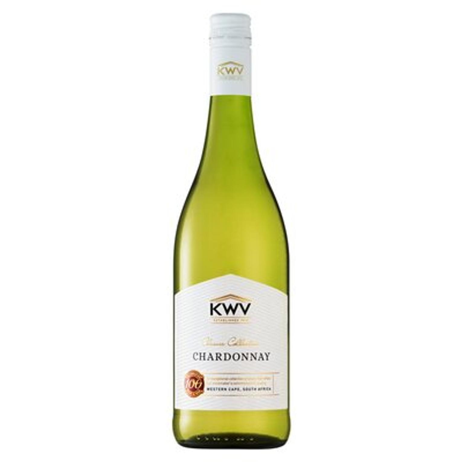 KWV Chardonnay is a white wine from the Western Cape (Coastal/Western regions) of South Africa. It is made from 100% Chardonnay grapes. The wine shows a balance between fresh fruit flavours and some oak or creaminess in many versions, depending on the vintage and style.