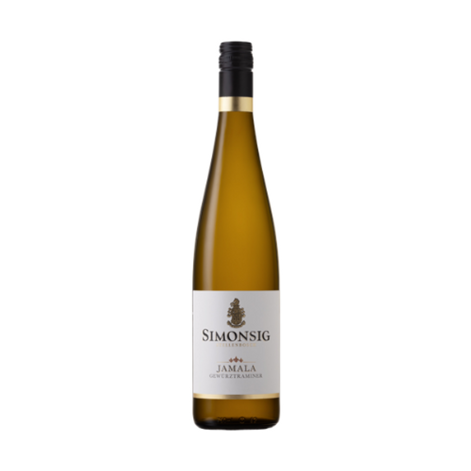 Simonsig Gewürztraminer (Jamala) is a white wine from Simonsig Estate in Stellenbosch, Western Cape, South Africa. It belongs to Simonsig’s Cultivar Range, highlighting varietal purity. The grapes are carefully grown on estate vineyards and fermented in stainless steel to retain aromatic intensity. It is crafted in a style with moderate residual sugar, giving it both expressive fruit and balance.