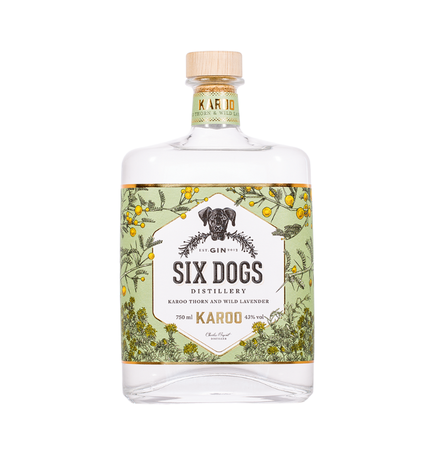 Six Dogs Karoo Gin is a premium London Dry-style gin crafted by Six Dogs Distillery in the Western Cape, South Africa. Distilled using twelve carefully selected botanicals—including juniper, wild lavender, and native Karoo flora—it reflects the unique terroir of the region. The distillery, situated in a valley intersecting three bioregions, utilizes pure mountain water and locally sourced ingredients to create a distinctive and balanced gin.