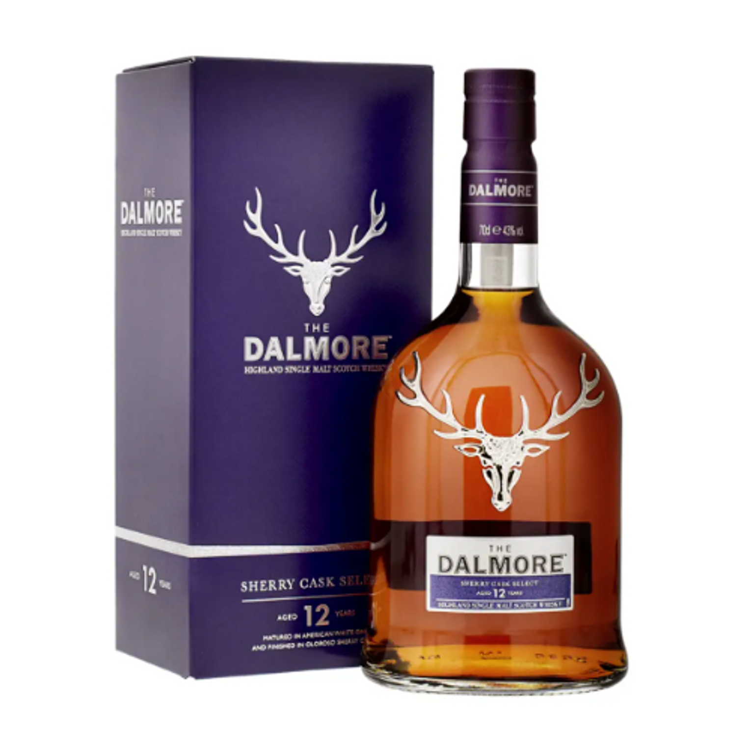 The Dalmore 12 Year Sherry Cask Select is a 12-year-old Highland single malt whisky. It begins its maturation in American white oak ex-bourbon casks for about 10 years, then is fully finished in sherry casks—both European and American oak—that held a bespoke blend of aged Oloroso and sweet Pedro Ximénez wine. Bottled at 43% ABV, this expression is crafted to emphasize Dalmore’s house style of orange, chocolate, and spice, enhanced by lush sherry sweetness and depth.