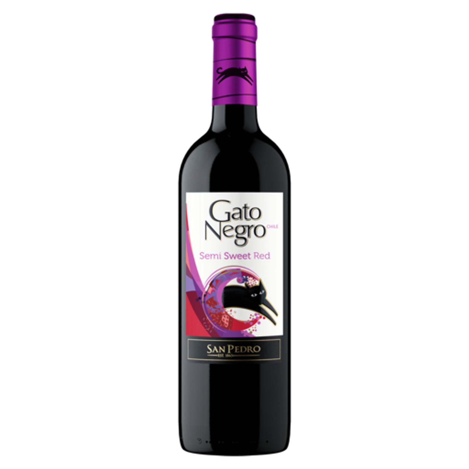 Gato Negro Semi-Sweet Red is a red wine made by Viña San Pedro in Chile, designed for those who enjoy a touch of sweetness balanced with fruit and moderate body. It typically has lower alcohol (~10-10.5 %) and is made for casual consumption rather than long aging, highlighting grape-fruit flavours and soft tannins.
