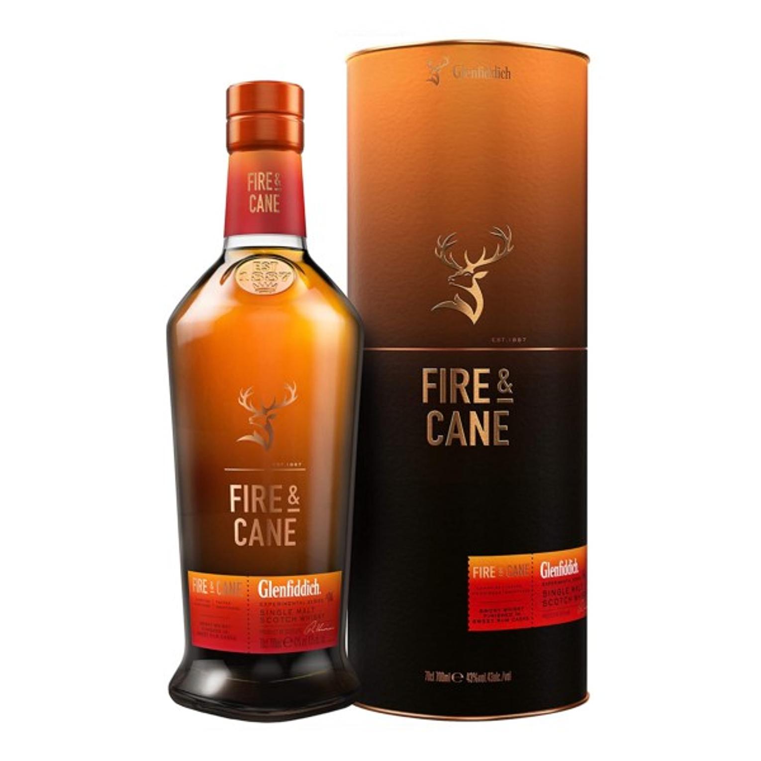 Glenfiddich Fire & Cane is a sweet and smoky experimental single malt, combining peated whisky with a rum cask finish, delivering a mix of toffee sweetness, campfire smoke, and tropical fruit.