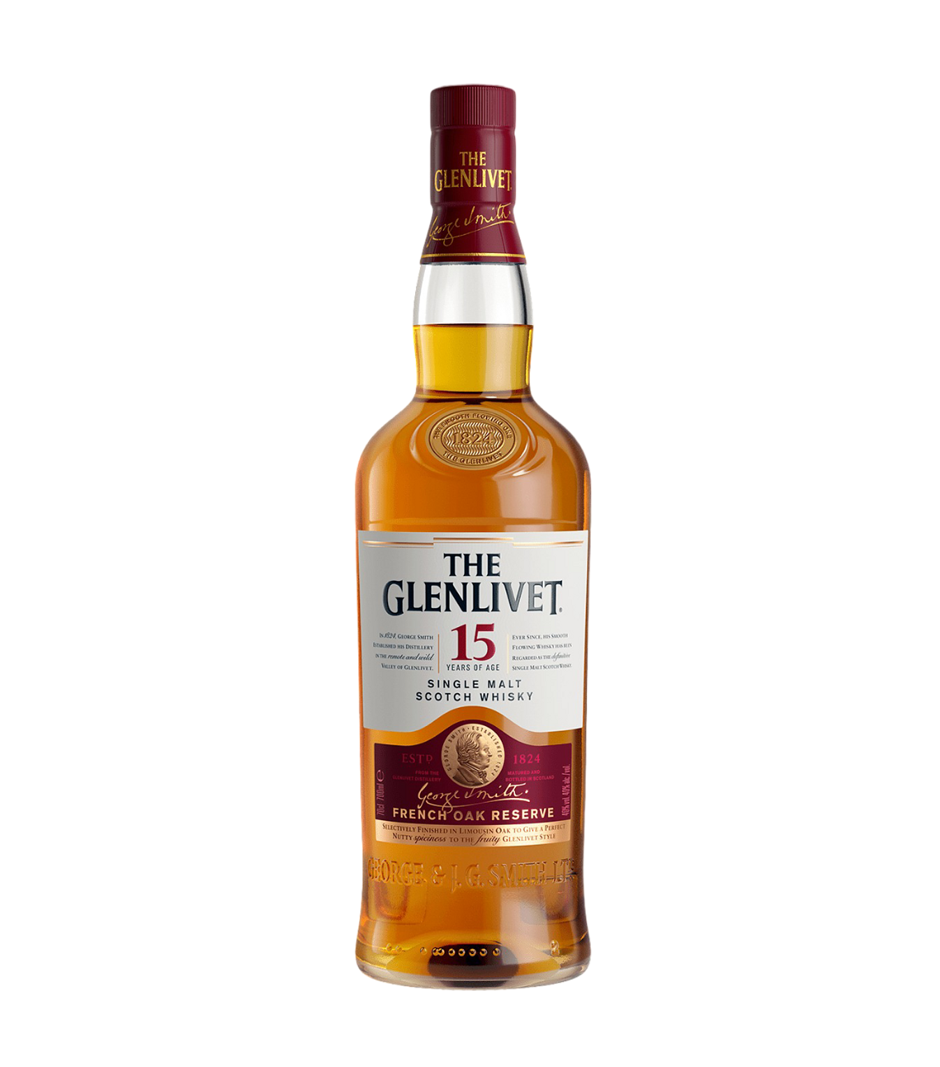 The Glenlivet 15 is a rich, creamy, and slightly spicier Speyside single malt, aged partly in French Limousin oak casks, offering notes of ripe fruit, toffee, almonds, and warm spice.