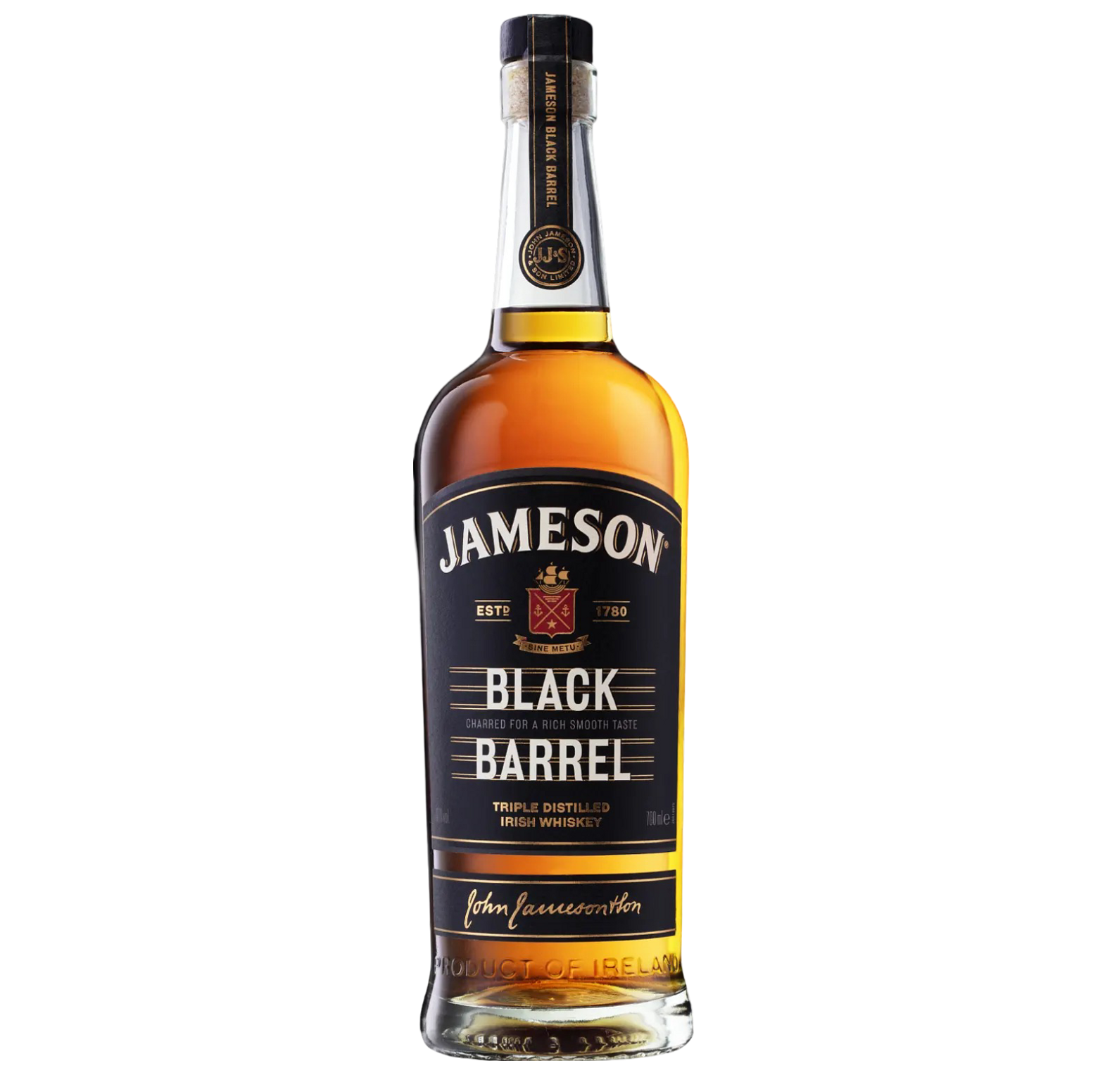 Jameson Black Barrel is a rich, full-bodied Irish whiskey, packed with butterscotch, caramel, toasted wood, and spice, thanks to its aging in double-charred bourbon barrels.