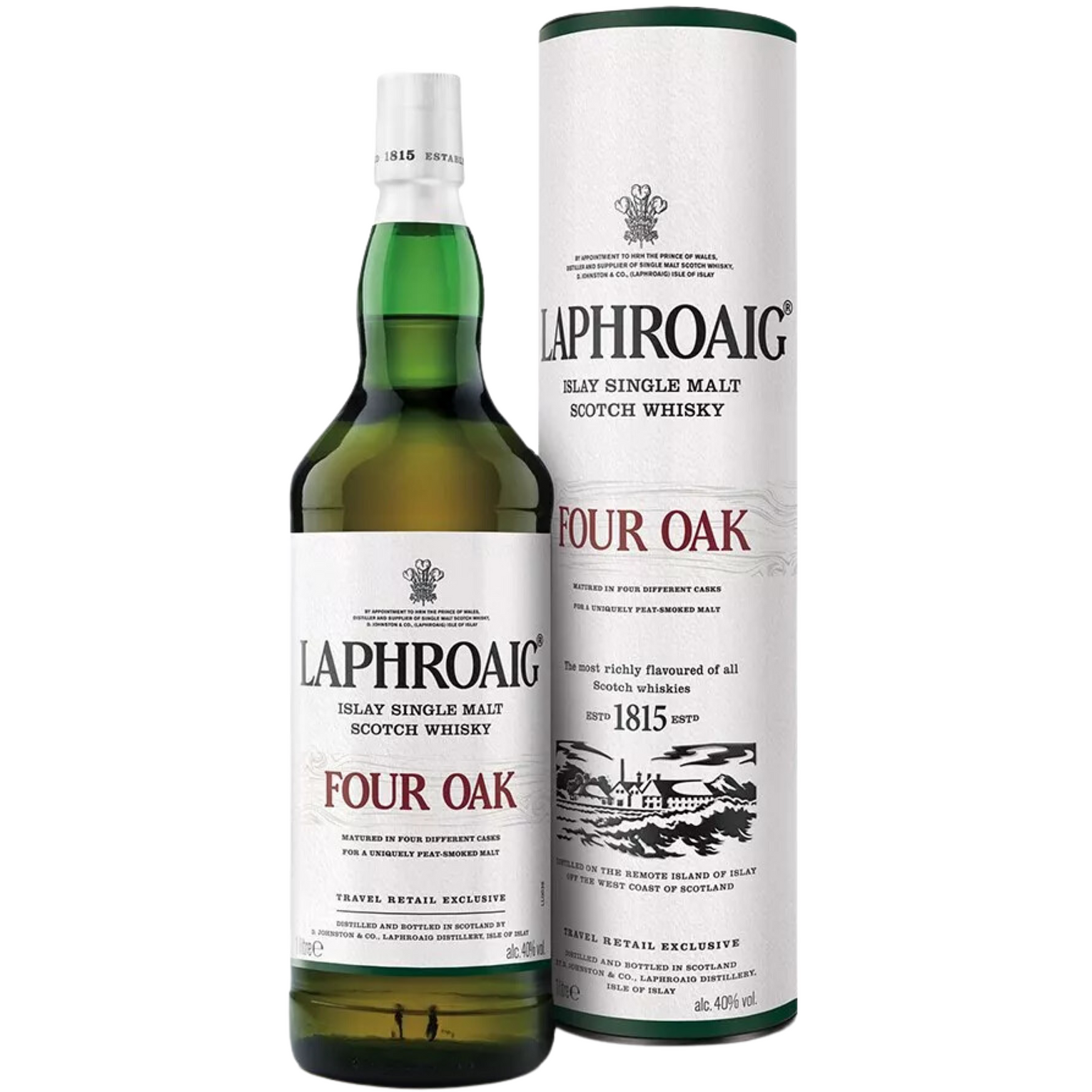 Laphroaig Four Oak is a non-age-statement single malt Scotch whisky from Islay, Scotland. It is matured in four distinct oak casks: ex-bourbon barrels, 19th-century-style quarter casks, virgin American oak, and European oak hogsheads. This expression blends Laphroaig’s iconic peaty, medicinal character with layers of oak-derived sweetness—vanilla, toasted woods and warm spice. Released originally for travel retail, it presents a different balance from more traditional core offerings, targeting those who appreciate Islay smoke but with extra cask complexity.