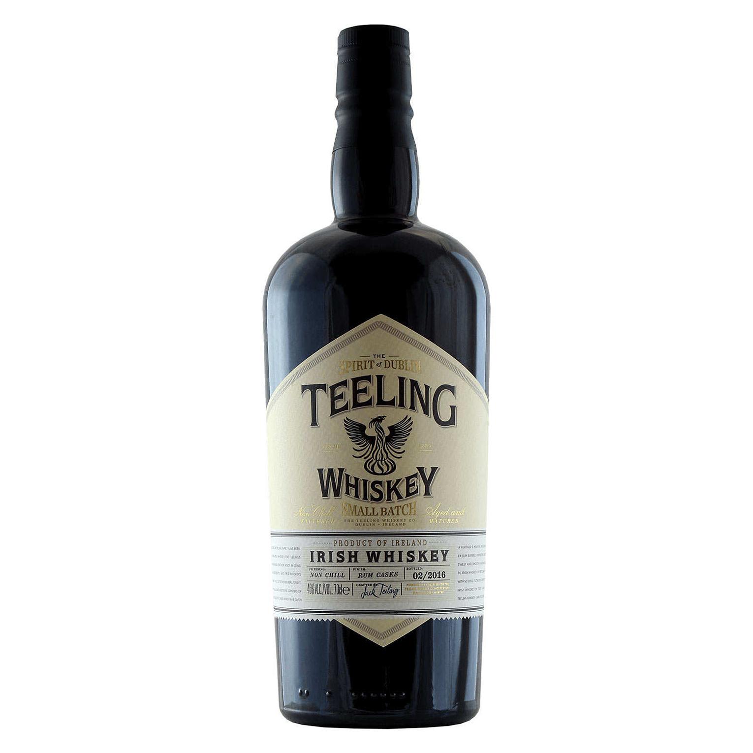 Teeling Small Batch is a blended Irish whiskey from the Teeling Distillery (Dublin). It combines grain and malt whiskeys (roughly 3:1 grain to malt), initially matured in ex-bourbon barrels, then finished for up to 12 months in Central American rum casks. Bottled at 46% ABV, it is non chill-filtered and has no age statement.